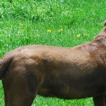 Susie is our junior yellow female who is about to have her first litter later this month. She is my walking companion – always by my side or staying in sight as she explores the fence rows. Again, her favourite passtime has to be fetch at which she quite excells. So, we are very excited to see her new litter – by a fox red father they should be beautiful.