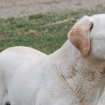 Maggie is our senior yellow breeding female. Attentive while inside, she especially enjoys a good game of fetch or a walk to the bush. You may think she is sleeping,but nothing happens in the yard that she doesn’t let you know about – just a great dog to have.