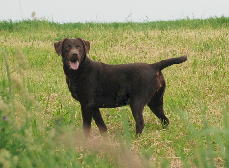 Katie is our senior chocolate female – with energy to burn – she just loves to run – and often it is just in huge circles around you, waiting for you to catch up to her. A keen hunter and retriever like her mother Kiesha, she is also a very affectionate companion. katie has given us many wonderful puppies and is now retired and living out her retirement years with a family in Guelph.