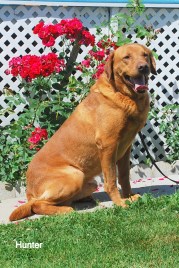 This is “Treasurehunt ing at Jerryru” otherwise known as “Hunter”. He is a beautiful fox red, and has sired several really nice yellow litters for us in the past couple of years. Although he is quite laid back and gentle in nature, he has the hunter instinct and has added “Hunting Retriever” title to his “Junior Hunter” and “Working Certificate Intermediate” titles this past summer. His pedigree shows his parents as well as many others in his lineage with numerous show and field titles. Because our yellow females are quite light yellow, most of the puppies are somewhere between them in colour – some lighter but an occasional puppy approaching his colouring. The colour often darkens as they grow. Sunshine is one of his daughters.